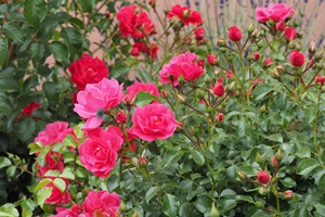 Das Abschneiden von verblühten Blütenbüscheln fördert auch bei diesen Rosen den nächsten Blütenflor.