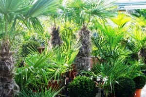 sowie Cestrum (Hammerstrauch) , Plumbago (Bleiwurz), Solanum (Sommerjasmin), Zierbanane, Cycas- und Phönix-Palme.